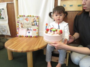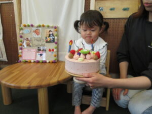 今年度から、誕生日ケーキは誕生日の子ども達が自分でデコレーションをする